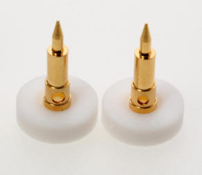 2 diamagnetische Mittelstifte - lötbar - lassen sich auf viele 10,3 mm-Kabel montieren.