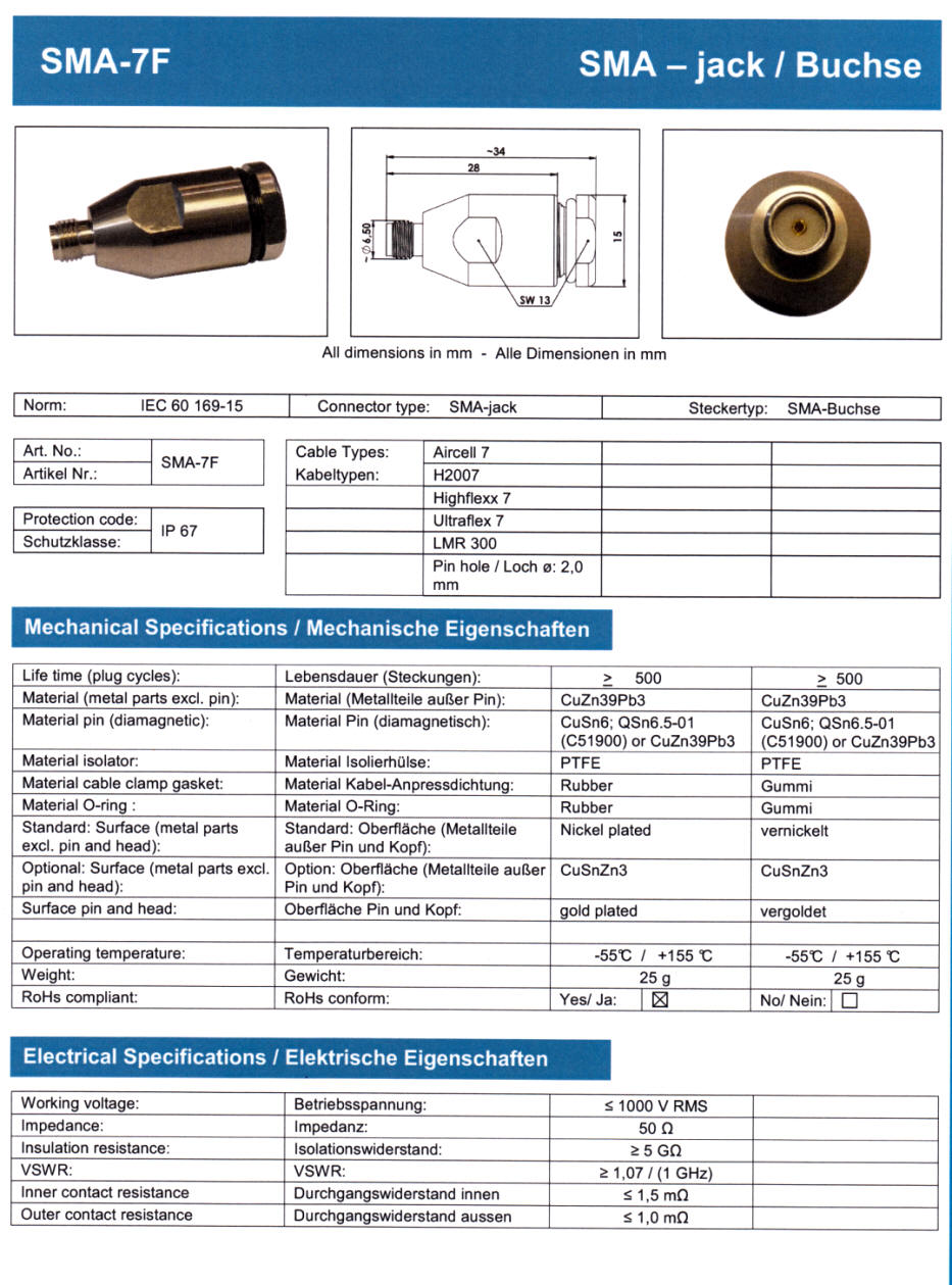 (HF-Stecker für unsere 7 mm Koaxialkabel)