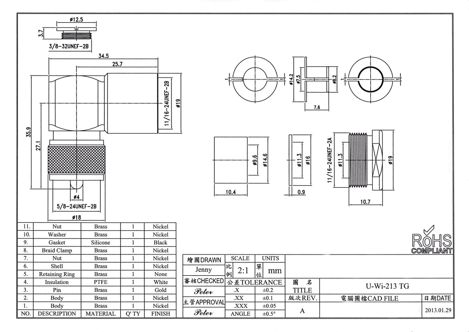 (UHF Winkelstecker für alle unsere 10-11 mm Kabel)