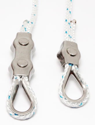 Kauschen, Litzeklemmen, Polyester- und Stahlseil (PVC-ummantelt)
